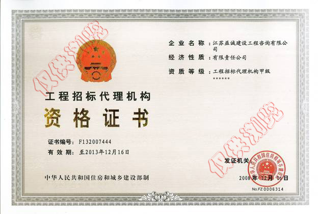 招標代理資格證書